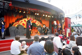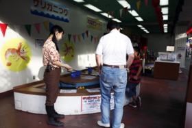 爲慶祝古稀之年過山車上塗滿了紅色,車身上寫著[祝•還曆]的字樣。 淺草花屋敷遊樂園裏最具曆史的遊樂設施是驚魂屋。 令人懷念的旋轉木馬深受攜家人前來的遊客們的喜愛。 令人眷戀的打靶場 遊樂園裏有一個廟會角,在有廟會的日子一定會有打靶場,那些第一次體驗打靶遊戲的小朋友們,很快就玩得入了迷。 大人或一家出行的人們,也很興致勃勃地玩著各種出現在昔日廟會上的遊戲節目。 花舞台在花舞台上,經常舉辦舞蹈和演劇、以及職業摔跤等各種活動,到訪者中還有不少拖家帶口的海外遊客。 爲慶祝古稀之年過山車上塗滿了紅色,車身上寫著[祝•還曆]的字樣。