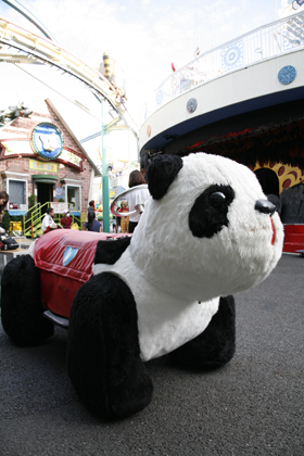 ゆったりと歩くパンダカーは、小さな子供にも人気です。