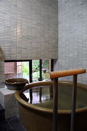 訪れた外国人の旅行客が家族で入浴する事ができるように改装し、工夫された浴場。