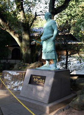The statue of grand champion sumo wrestler Chiyonofuji (present stable master Kokonoe), which publicly honors his receiving of the People's Honor Award and achievements, stands in the precincts of Gyokurin Temple. (Erected in June 2011)