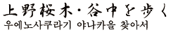 야나카, 우에노사쿠라기는 분쿄구 네즈에서 네기시 1쵸메, 그리고 아사쿠사로 이어지는 코토토이 길, 그리고 분쿄구 센다기의 단고사카시타에서 우에노사쿠라기로 이어지는 미사키 언덕으로 양분되어 있습니다. 이 부근부터 분쿄구로 이어지는 지역에는 에도, 그리고 메이지 시대부터 많은 문인이나 예술가가 살았습니다. 그들도 이 거리를 오갔겠지요.