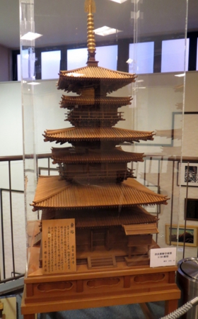 這是木工工藝品,主要以制作神興(注:供有神牌位的轎子)爲主,這是奈良藥師寺東塔的縮小模型。