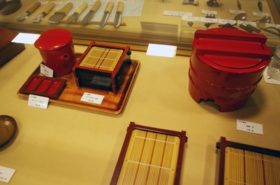These are lacquerware. Since there has been many soba restaurants in Tokyo, lacquerware in Tokyo often refers to trays for soba, small tables for sushi and so on.