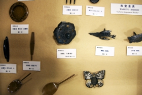 These metal fittings have been used as ornaments for fusuma sliding doors, furniture or houses, and as nailhead covers. Although there has been little demand for metal fittings, we should leave this kind of handicraft. Nowadays, the number of houses that have fusuma sliding doors has decreased.