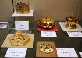 이것은 카자리(장식) 금속 세공입니다. 가구 등의 부속만이 아니라, 아사쿠사에서는 미코시 부속 제조가 많습니다. 그리고 법기 등에도 많이 사용됩니다.