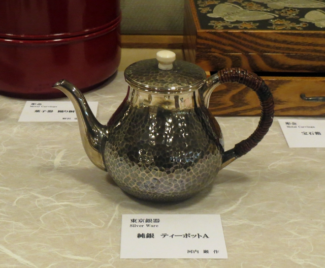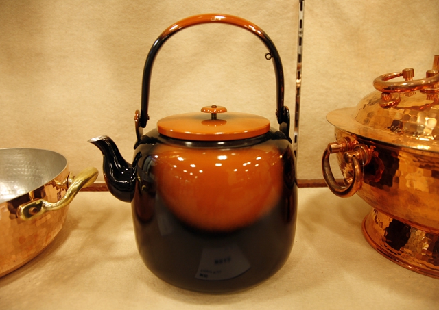 이것은 주석입니다. 주석은 녹는점이 낮습니다. 그래서 비교적 부드럽지요. 바닥에 떨어트리면 찌그러집니다. 이것은 두드려서 만든 것이 아니라 깎아낸 것입니다. 주석 그릇의 수요는 나고야 인근이 많고 도쿄에서는 주로 은기가 소비됩니다.