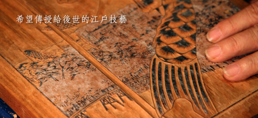 我也並不是從一開始就想成為一名雕刻師的。以前我不愛學習,不管怎樣如果一直在家裏肯定會讓我務農的,我在家裏兄弟中又是排行第二,覺得很不舒服,就想不管怎麽說先到東京再說吧,正好有親戚家的叔叔在東京的龜戶(江東區)作雕刻師,就先到了叔叔那裏玩了幾個月。無所事事地到處溜達著看看之後,叔叔對我說,“要是沒有什麽事的話,你不想試試嗎?”,就是那樣開始的,到能夠勝任這個工作為止,用了好幾年的時間。