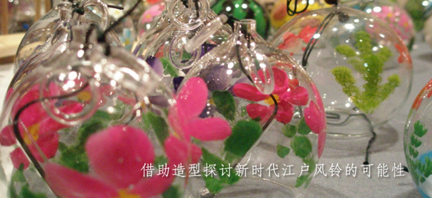 到國外去參加日本商品展銷會是一個契機。在國外人們沒有將風鈴裝飾在室外的意識,只是挂在室內。還有,從一起去日本商品展銷會的做榻榻米的人話中得到啓示,說國外的人只買1米長的榻榻米兩頭的包邊布、系在腰上或綁在頭上。令那邊的人費解的是,為什麽把這麽漂亮的東西只用在榻榻米上呢,通過這件事我想到,只要是好東西,就不要只局限于傳統中,將其更加廣泛的運用在其他方面不是更好嗎?這樣我就作出了耳環和手機等挂件。