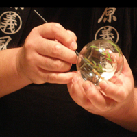 在風鈴內側畫畫,是件非常精細的工作,顯示了手藝人的非凡技藝。