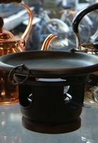 銅是一種導熱性極佳的金屬,用它燒開水會非常快。因爲熱不光集中在有火焰的部位,很快會分散開去。像不鏽鋼等金屬,熱量就不容易擴散,只集中在有火焰的部分,所以容易燒糊鍋。銅散熱快而廣,所以不會糊。蛋卷平底鍋也是用銅制的最好用,用不鏽鋼做的就做不出那麽好吃的蛋卷。