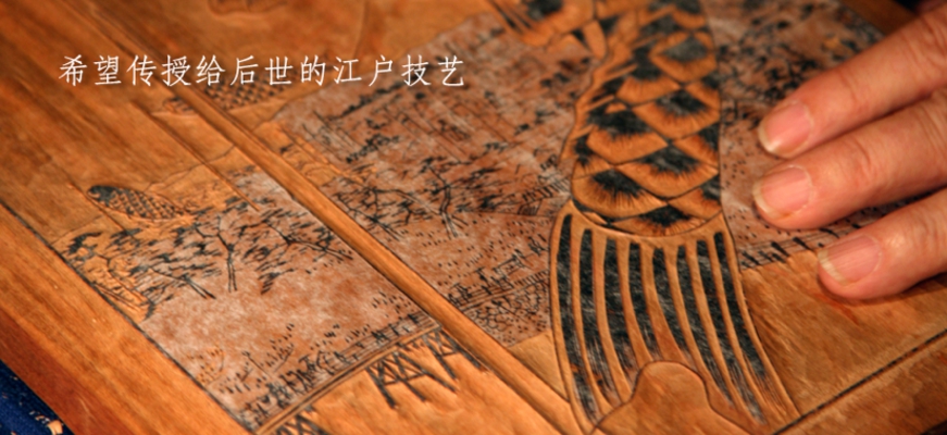 我也并不是从一开始就想成为一名雕刻师的。以前我不爱学习,不管怎样如果一直在家里肯定会让我务农的,我在家里兄弟中又是排行第二,觉得很不舒服,就想不管怎么说先到东京再说吧,正好有亲戚家的叔叔在东京的龟户(江东区)作雕刻师,就先到了叔叔那里玩了几个月。无所事事地到处溜达着看看之后,叔叔对我说,“要是没有什么事的话,你不想试试吗?”,就是那样开始的,到能够胜任这个工作为止,用了好几年的时间。