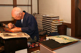 没有,到现在为止都是完全相同的。出版单位将原稿拿到雕刻师这里,我把它雕刻完了以后,连同原稿一起交给染色师,染色师按照原稿进行上色后再返还给出版单位,完成后的版画由出版单位负责买卖。