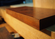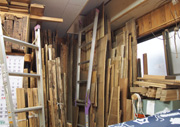 ここに立て掛けている材料は、寸法取ったばかりの桑材ですが、これもお客さんに頼まれて仏壇にします。指物で、仏壇らしくないすっきりした形にしてくれと依頼されています。それで、親御さんの形見の品なのでしょうが、それを仏壇に組み込んで欲しいと言われています。