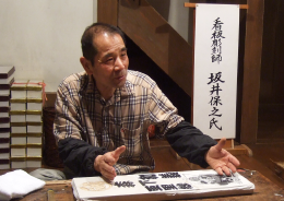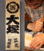 형태로서 후세에 남는다는 것은 기쁜 일입니다. 가령 손님에게 납품하고 몇십 년이 지나서 무슨 일 때문에 그 장소를 방문했을 때 제 아들이나 손자가 저나 선대의 작품을 보았을 때, 저것은 아버지와 할아버지가 만든 것이라고 알 수 있다면 멋진 일 아닐까요. 제 아버지 작품으로 기억에 남는 것으로는, 이와테현의 모리오카에 있는 하치만사마에 도쿄에서 여러 사람이 기증한 현판이 있습니다만, 예전에 그곳에 우연히 갔을 때 아버지 솜씨 같다고 생각하면서 보고 있자니 우연히도 아버지의 이름을 발견 적이 있었습니다. 연대를 계산해 보니 독립하시자마자 맡은 일이었지요. 그래서 실물을 보면 아버지가 머리에 떠올라 지금 자신의 나이와 비교하면서 작업을 어떻게 하셨을지 상상을 하는 경우도 있었지요. 이렇듯이 아버지의 작업이 지금도 형태로 존재하고 후세까지 전해지는 간판이란 매력이 있습니다. 자신이 마음을 담아 해낸 작업들이 형태로 남고 사용되는 모습을 보는 것은 이 일을 하면서 즐거움이자 기쁜 일이지요.