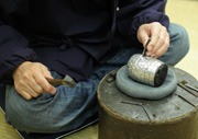 옛날 주전자를 고쳐달라고 오시는 분도 계시는데 도저히 안 되는 것도 있습니다. 재질의 문제가 아니라 옛날에 정으로 문양을 깊이 새긴 것 같은 경우는 두께가 매우 얇아서 사용하다 보면 잘라지는 경우가 있습니다. 그것만큼은 고칠 수 없어요.