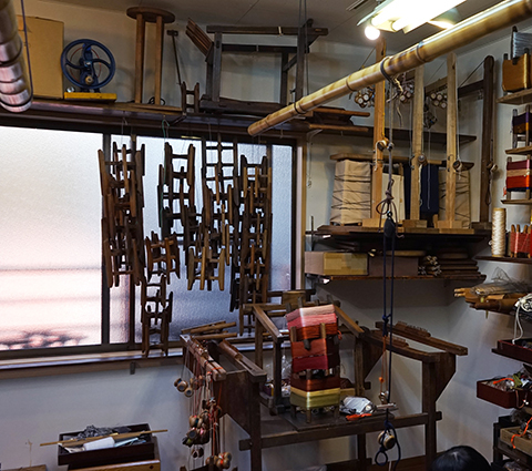 製造問屋でした。工場もあちこちにありました。2、30年程前は、一般の方に売る小売りは一切なくて、呉服屋さんへの卸でしたね。呉服問屋さんが多くありましたので、帯締めだとか呉服に関連した組紐がほとんどでした。けれども、着物を着なくなった影響で、帯締めの需要も10分の1程度に激減してしまいました。そのため、小売りをしてなんとか生き残ろうということになり、今に至っています。
