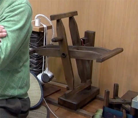 糸を巻く道具でかせ上げ台 といいますが、何回巻いてどの程度の長さと測りますが、そういう場合は尺で測っていますから、巻き取った後にメートルで換算したりしています。
