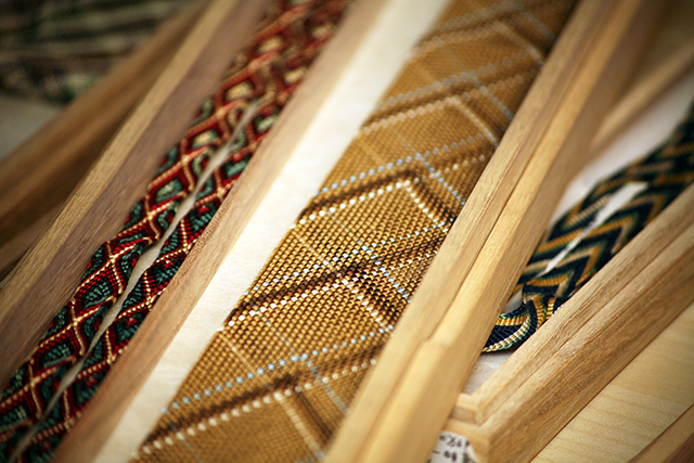 공방에는 지금까지 사용된 실이나 끈이 참고 자료로 보존되고 있습니다.