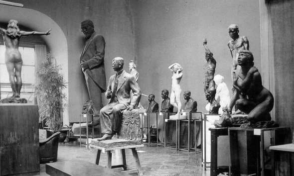 往時のアトリエ風景(朝倉彫塑館『彫刻界の巨匠 朝倉文夫の世界』より)