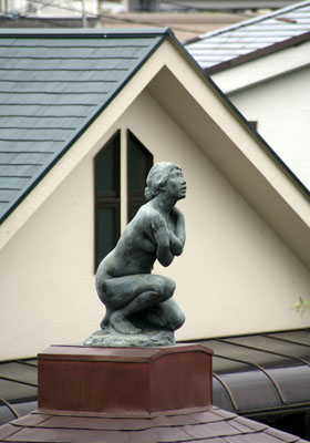 アトリエ棟屋上にも男性像「砲丸」が配されています。