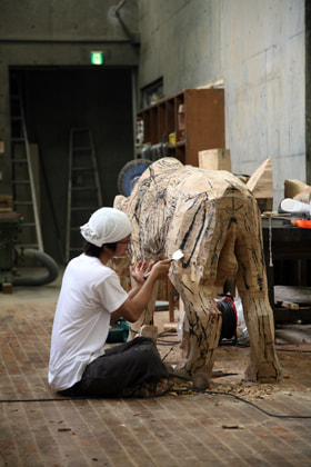 學生們能夠從早晨到夜晚都專心進行自己的創作,現在,把喜歡把自己感興趣的主題用木頭制作出來的學生增多了。在教學上,先讓學生自己去思考,然後討論他思考的東西是否有意義,從而激勵學生。如果只是抄襲從前的東西,當想做新的事情就會不知如何下手,讓他們每個人自己去思考,看自己的雕刻觀是否符合時代,是否能包含有深度的思想。另外,在素材選擇上,使用最容易雕刻的,也比較容易到手的日本國産樟木。(下段繼續)