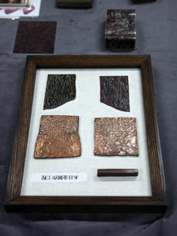 聽筱原教授說,鍛金技術分熱加工和冷加工,前者是把鐵燒紅後進行鍛造,後者是將退火後變軟的銅板進行的冷加工擠榨技法。其他比較傳統的還有著色法,就是用硫酸銅和銅綠的水溶液煮上顔色的煮色著色法,和把不同的金屬板層積接合,一邊削出紋樣,一邊敲打拉長的木紋金等技術。