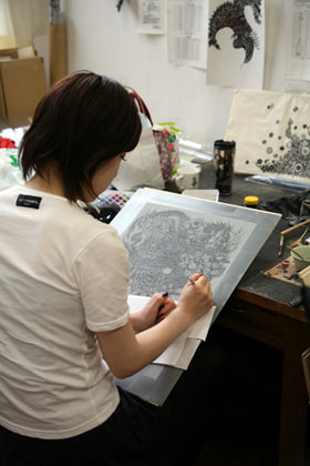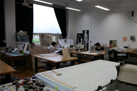 Students eagerly create woodblock prints and lithograph in the quiet and calm studio.