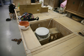 According to Professor Fukai, students do not have quotas to fulfill, so they create works as many as they want. In the master's course, there is the Graduation Works Exhibition. Although students' works are exhibited at the University Art Museum and this studio, the museum's the exhibition space for sculptures is small, so students spend 1 year to create works which sizes fit into one room of the exhibition space. Large works that cannot be put in a building are exhibited outside or in front of the museum. Although each student belongs to a laboratory, students can use any studio regardless of their laboratories. Professor Fukai specializes in wood carving, and a variety of students ranging from juniors to doctoral students are enrolled in the wood carving course. The stone carving and metalwork courses also have various students. Students in the modeling course create works in graduate and undergraduate students' rooms. Although students receive practical training during the second semester of the second year for the first time, approximately 70 % of students use the same materials that they have used before. In Japan, since many students develop their ideas from materials, such an education system is adopted. (continued in the lower column)