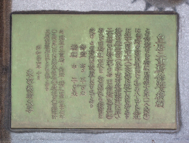 皇居二重橋の旧飾燈・橋欄の銘板
