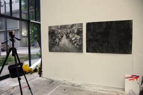 合羽橋は一般の店よりも発見が多く楽しいし、外国人を連れて行くと喜ばれてさらに良い。面白いと思ったものを風景の中に置いていく事などで、今まで好きな物や気になっていた事、あるいは自然に表現していた事を意識させる。入学試験では、絵画科の学生として確固とした表現のベースを有しているかが試されるが、さらに表現の独自性を持った人を採ろうとすると大変難しい。入学後に認められたいという想いが強いと型にはまってしまう。2年次は、もう一度自分を作り直すための問題点を挙げる時期であるとの事。スケッチによる取材は基本だが、デジタルの情報は手軽なので、最近はデジタルカメラで資料を撮る事も多い。写真に撮った物をドローイングすることに、学生はあまり違和感を覚えないようである。人間の両眼とカメラの単眼との違いは体感させて、描く画材は自由。表現自体が主であり、表現するためのマテリアルに縛りはない。絵画科油画専攻では、絵画表現を前に押し進めるための段階と捉えていて、技法としての油絵には拘っていない。アニメーションは意外かもしれないが、動画は絵がコマになって初めて動くもの。コマとコマの間に非連続の空白があり、目が補う事で物が動くと認識するという事を教えているとの事でした。学生たちの表現は、ドローイング、インスタレーション、写真、ビデオ等を用いたものと自由な表現に溢れていました。