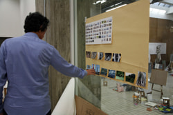 一方の絵画棟アートスペースでは、授業と展示を組み合わせた実習を行っていました。