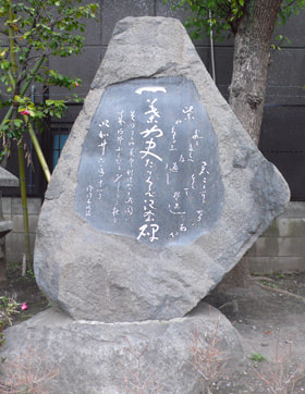 在一叶纪念馆对面的一叶纪念公园里立着《青梅竹马》的纪念碑,上面刻着佐佐木信网(日本的和歌诗人与文学家)的两首歌。