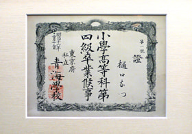 搬家到上野御徒町后,在就学的池之端私立青海学校小学高等科4年级的毕业证书(明治16年(1883)12月),以第一名的成绩完成学业。(山梨县立文学馆藏)