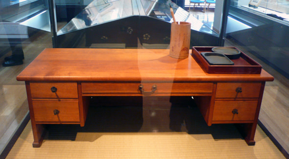 Reading desk that is said to have been used by Ichiyo (reproduction, created by Matsutaro Watanabe) -- the original is kept in the Museum of Modern Japanese Literature.