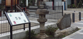 The monument, on which Kan Kikuchi's compliment to Ichiyo is inscribed, stands in front of the Ichiyo Memorial Park. You can see the words "Composed by Kan Kikuchi" on the monument.