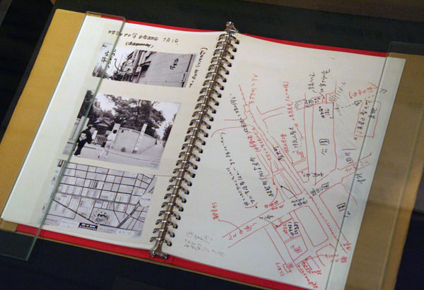 在紀念文庫裏,展示著許多充滿畫趣的創作筆記和采訪筆記,還有許多他的親筆繪畫。