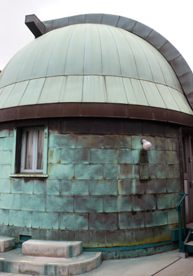 池本 : こちらは、天体観望用のドームです。この銘版や古い落書きなどが時代を感じさせてくれます。このドームがある日本館(旧本館)は昭和5年に完成しましたが、それに遅れること1年の昭和6年の10月にドームが完成して、その年の末から天体観望のために多くの人を迎え入れています。