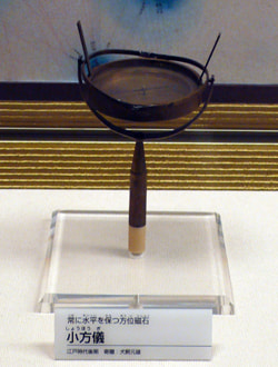 伊能忠敬が、全国測量の際に「わんからしん」と読んだジンバル構造の方位磁石。方位磁石を載せた杖をどのように傾けても、水平がとれるようになっています。