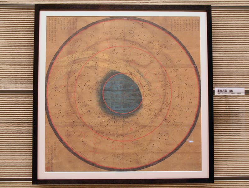 타카모리 칸코(1750-1830)가 그린, 은하수도 그려진 특유의 색채에 의한 별자리 그림. 칸코는 기구 제작에 능하여 팔분의, 상한의(사분의), 온도계, 천문 시계 등의 많은 과학 기계를 남겼습니다. 히라가 겐나이가 수리 제작한 ‘에레키테루(수동 마찰 발전 장치)’등도, 독자적으로 제작했다고 전해집니다.