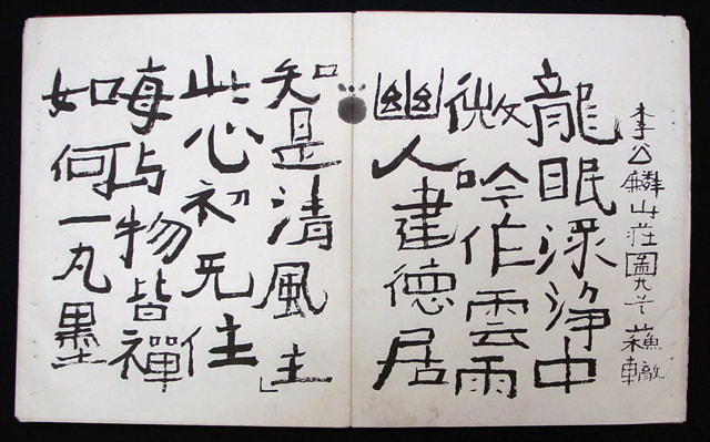 Fusetsu Nakamura continued to work hard, producing paintings and newspaper illustrations, conducting research on calligraphy and collecting documents. However, he suffered from a nervous breakdown due to overwork in 1908, and his doctor told him not to do any work. He wrote this "Ryumin-jou" as part of rehabilitation while visiting the Isobe spa for his treatment. The poems written on "Ryumin-jou" were composed by Su Zhe (brother of famous poet Su Shi: 1039-1112) for 20 views of Mount Ryumin. It is a set of 20 poems with five-character lines. When Fusetsu showed this work to Hekigoto Kawahigashi, Hekigoto strongly recommended him to publish the work. And, copies of this book were quickly sold out as soon as published. It became the talk of the calligraphy world at the time.