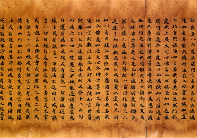 重要文化財に関しては、当館では敦煌文書とよばれる、敦煌やトルファンなどから出土した写経の類が12件あります。昭和8年(1933)と15年(1940)に国の指定を受けました。当時は国宝として指定されていましたが、文化財保護法が制定された際に、旧国宝は全て重要文化財になりました。重要美術品は5件の所蔵品があります。これらは不折が申請したのではありません。不折には、収蔵品は皆平等との考えが根底にありましたので、甲乙つけるのを嫌っていました。ではなぜ指定を受けたのかと言いますと、他で同じような物が指定を受けると、同レベルの物が指定されないとおかしくなりますので、先方から指定してきているのですね。敦煌文書に指定が偏っている理由は、当時それらが他で指定された事があったのでしょうね。