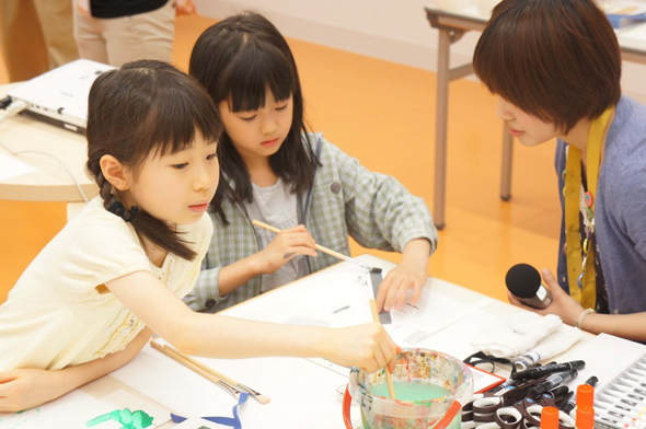 Some people who participated in workshops said that they would participate in the next workshop, and applied for the next one. Since the museum is under the direct control of the Tokyo Metropolitan Government, there are many free or low charge plans for which a wide range of people can apply. Also, we have made an effort to cooperate with schools. For example, elementary school students of Matsuba Primary School, Heisei Primary School and Yanaka Primary School visited the museum in June 2013, and a special class for art appreciation was held in an exhibition room on the museum's off day. Of course, "Tobira-a" also took a lively part in the class.