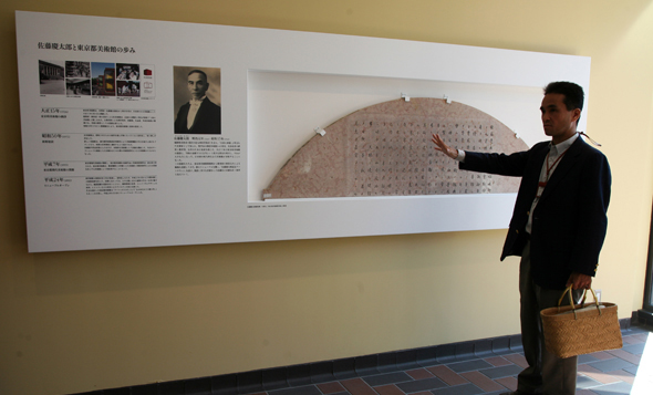 佐藤慶太郎を顕彰した銘文は、佐藤慶太郎記念アートラウンジに、その経歴と共に展示されています。
