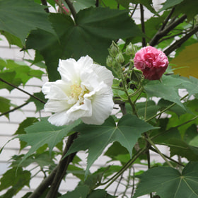 花是白色的,傍晚时却会像喝醉了似的变成红色,因此而得名醉芙蓉,种植在主建筑的侧面。