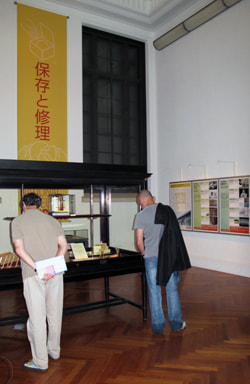 神庭: ここ本館17室は、文化財の保存と修理について、皆様に分かりやすく紹介するための常設の展示コーナーです。このような常設コーナーを開設しましたのはつい最近のことで、まだ開設してから2年ほどです。博物館というと、やはり展示施設という印象をお持ちの方が沢山おられるので、その背景には研究、保存など様々な活動がなされているんだということを理解していただくための一環として、特に保存についてこのコーナーを設けさせて頂いたわけです。正面にございますパネルは、東京国立博物館の保存修復課がどのように文化財の保存について考えているかということを系統的に示したものです。まず文化財は公開があれば必ず傷んでいくものであるということを述べています。
