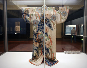 小袖 白綸子地流水松藤模様(しろりんずじりゅうすいまつふじもよう)/江戸時代・17世紀