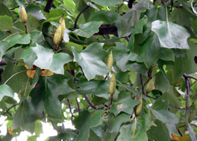 北米東部に植生するモクレン科の樹木、別名ハンテンボク。ユリやチューリップに似た花をつけます。本館正面前に大樹が聳えています。