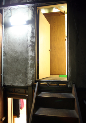This is a room where Beat Takeshi (Takeshi Kitano) used to live in. When he came to this hall, he had no money and clothes. There were times when he wore a costume for plays because he had no clothes. Those minor performers, including Takeshi Kitano, used to sit in a circle and drank alcohol, encouraging each other in this windowless room. If futon mattresses were laid out in this room, 2-3 minor performers could be slept, so they were always stationed here.