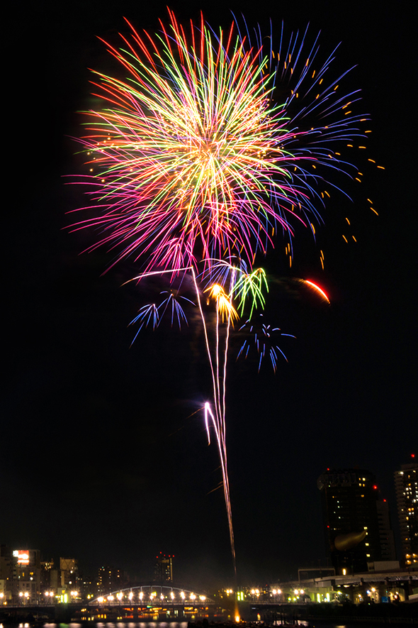 Sumida River Fireworks Festival, which is held annually at the end of July, is one of the biggest fireworks festivals in Tokyo, and gathers nearly 1 million visitors every year. It is also covered live on television. Fireworks are shot off from two venues, competing with each other: the first one set on a venue between the Sakura and Kototoi Bridges across the Sumida River and the second one between the Komagata and Umaya Bridges. The festival is a popular attraction in summer in Tokyo, and marked its 40th anniversary in 2017 since it was resumed in 1978.