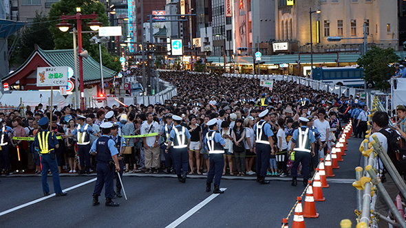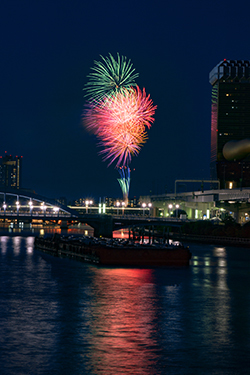 It is said that Sumida River Fireworks Festival derived from a water god festival held by General Yoshimune Tokugawa at the foot of the Ryogoku Bridge in 1733, in which fireworks were shot off in order to appease souls of people who died from famine and cholera. Although the festival was temporarily suspended at the times of the Meiji Restoration and the Second World War, it marked its 40th anniversary in July 2017 since its name was changed to "Sumida River Fireworks Festival" in 1978. (Area around the Sumida River, Asakusa and Mukojima)